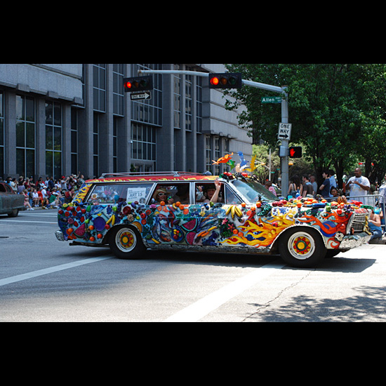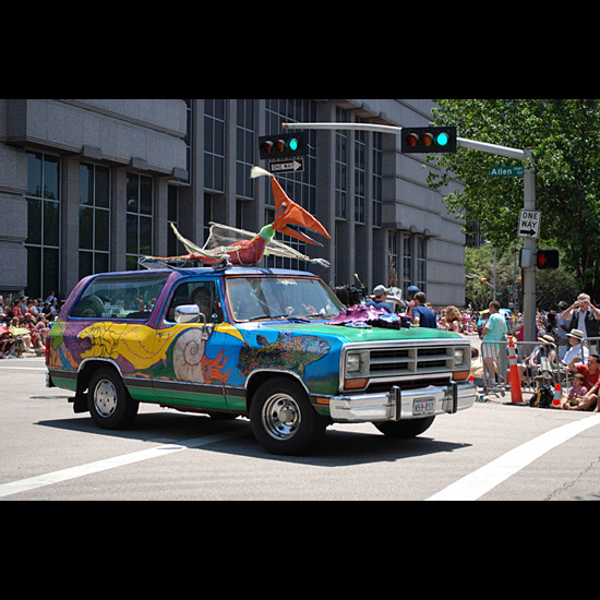There are over a thousand photos of theHouston Art Car Parade on theArt Cars in Cyberspace website. Here are some from the2009 Houston Art Car Parade.